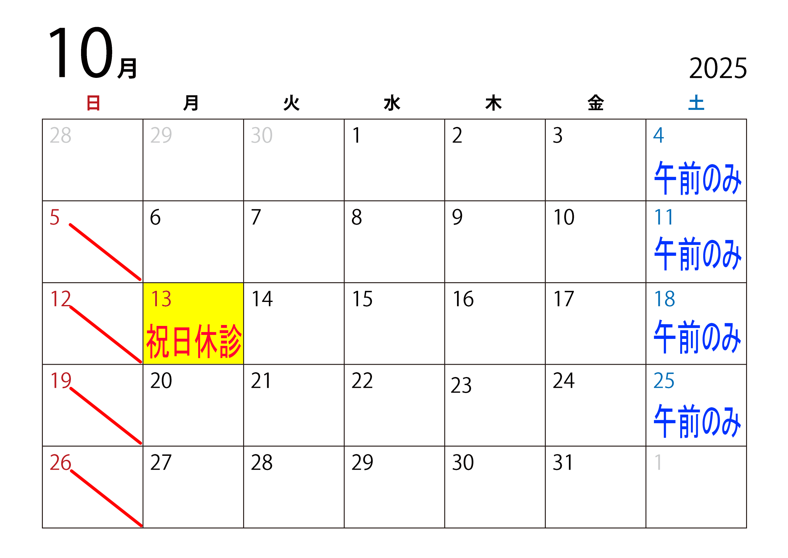 10月休診のお知らせ